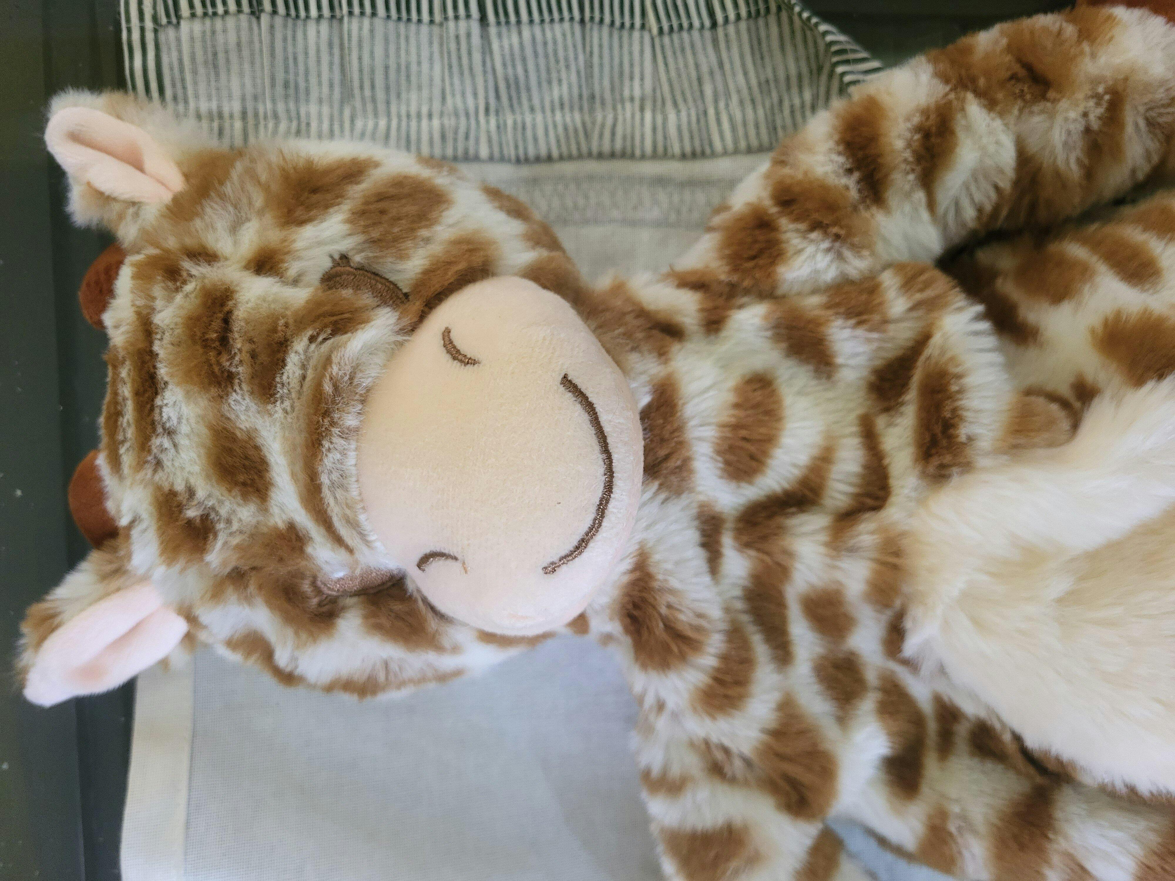 From nap time to next adventures, Raffi the Giraffe stands tall in comfort. With his kind smile, cozy spots, and long cuddly body, he’s made to be hugged, packed, and carried through every high and low of a child’s day. Quiet, calm, and always within reach — Raffi helps little ones feel big feelings with ease.